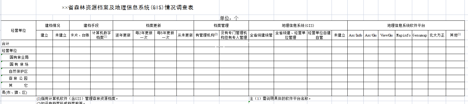 标题:省 森林资源档案及GIS情况调查表-Excel表格