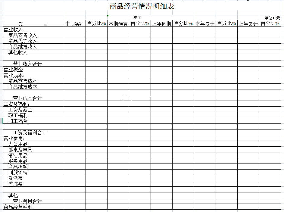 商品经营情况明细表-Excel表格