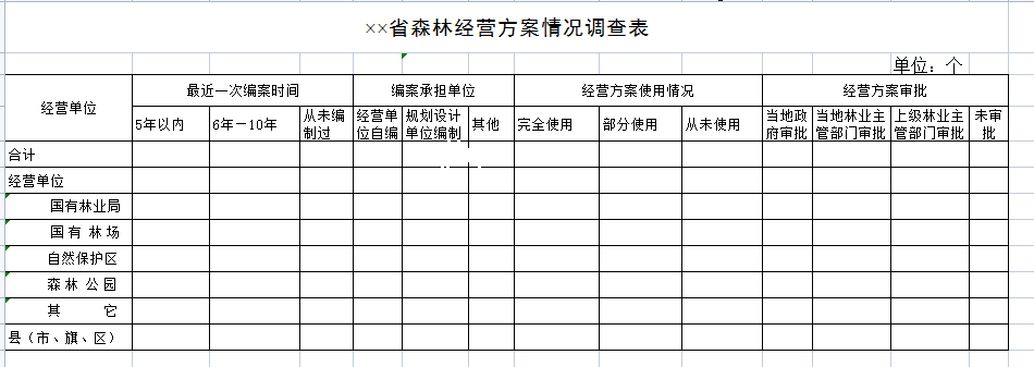 森林经营方案情况调查表-Excel表格