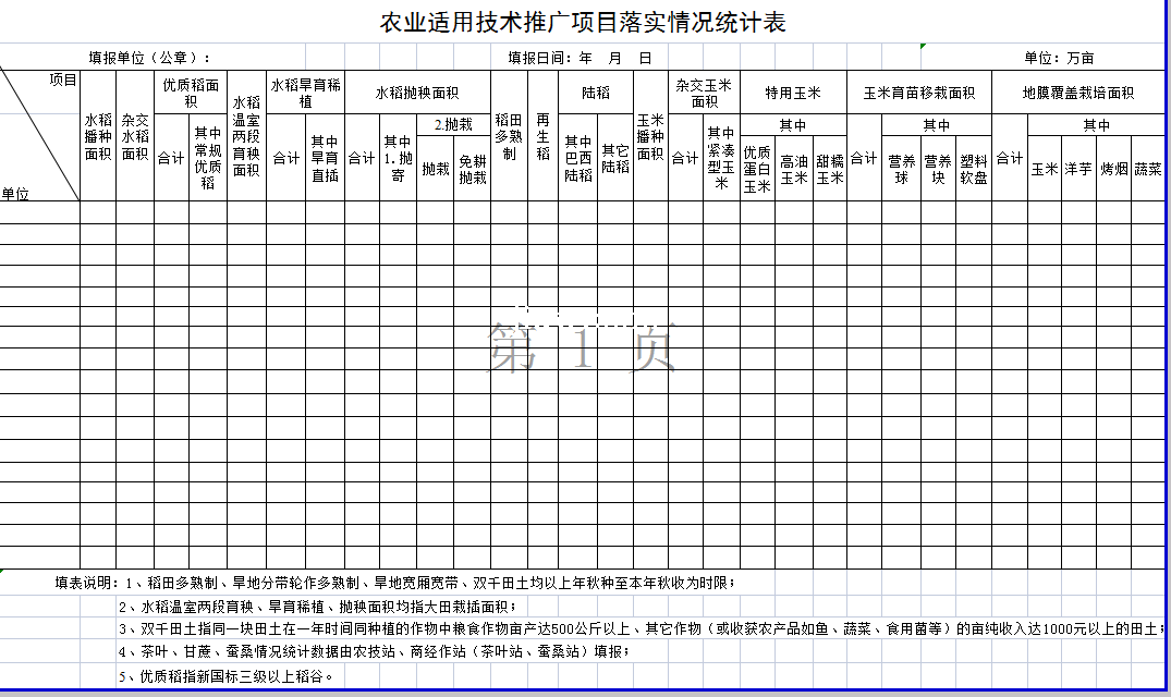 标题:农业适用技术推广项目落实情况统计表-Excel表格