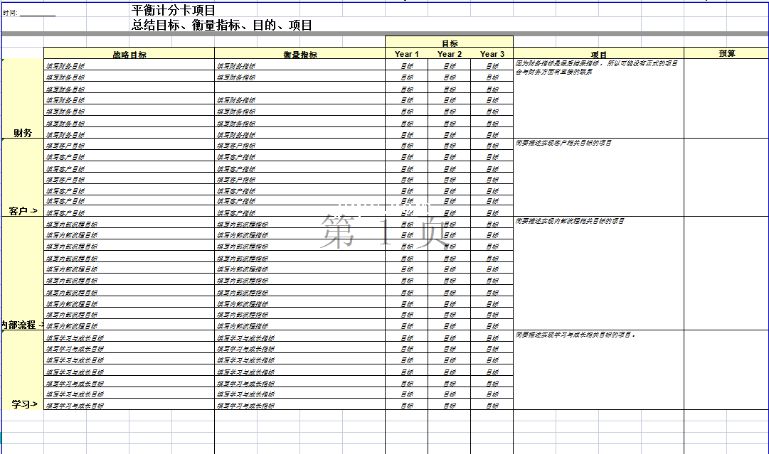 标题:平衡计分卡项目总结表-Excel表格