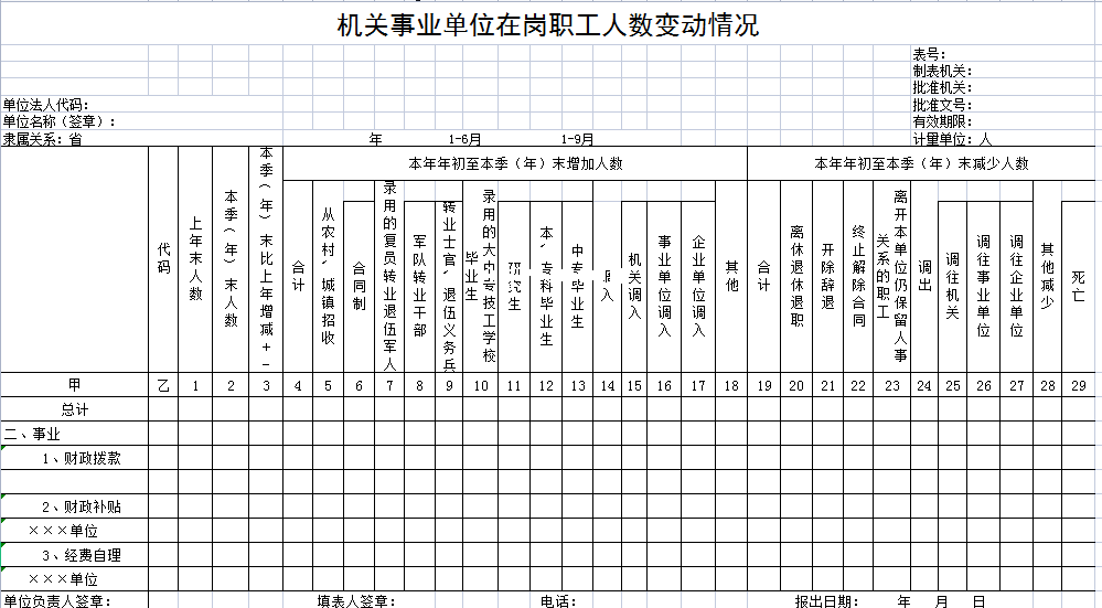 机关事业单位在岗职工人数变动情况-Excel表格