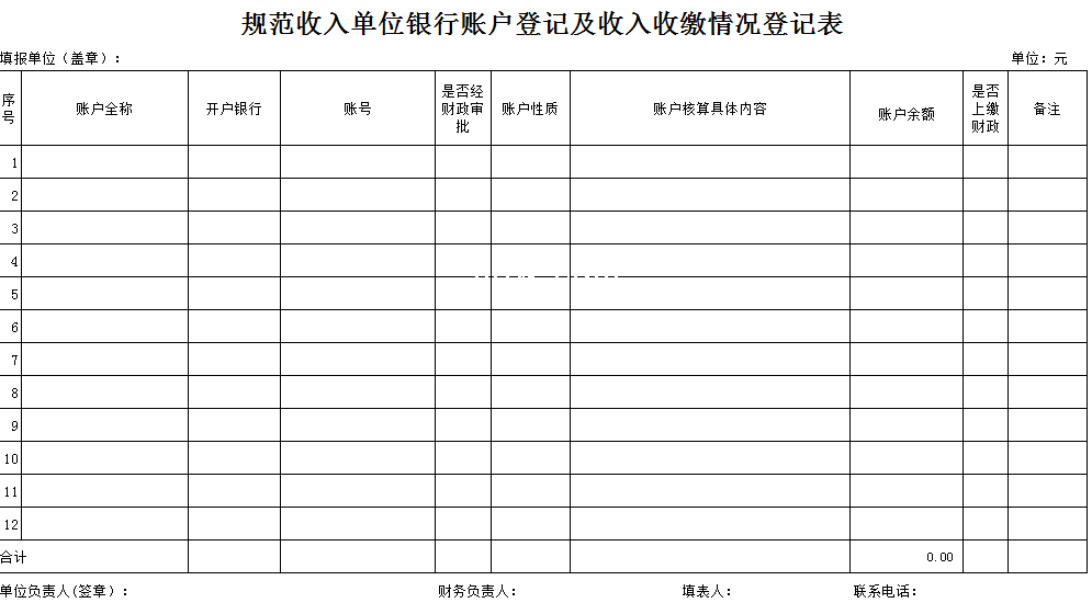 规范收入单位银行账户登记及收入收缴情况登记表-Excel表格