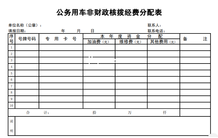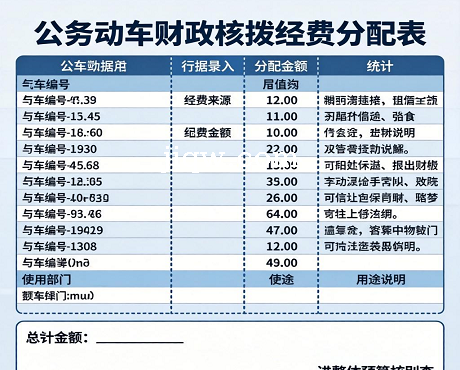标题:公务用车非财政核拨经费分配表-Excel表格