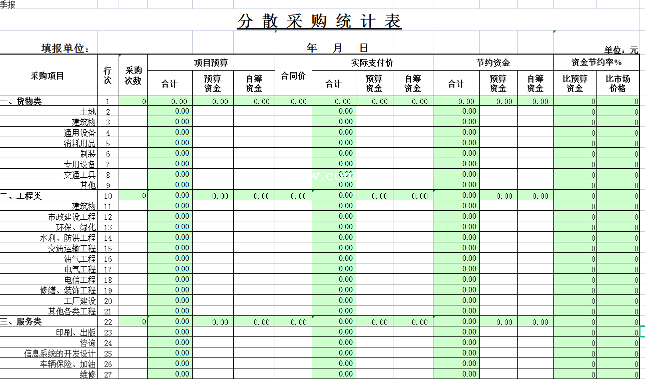 标题:分散采购统计表-Excel表格