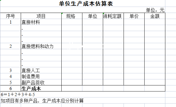 单位生产成本估算表-Excel表格