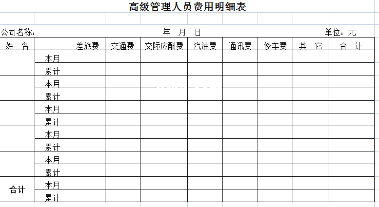 标题:高级管理人员费用明细表-Excel表格