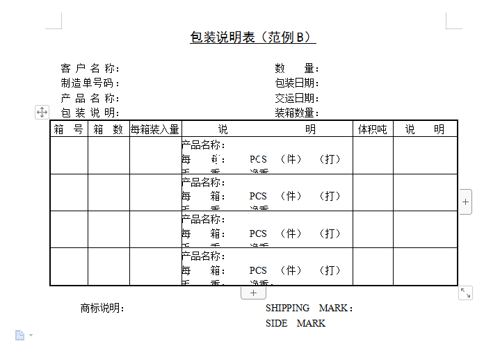 包装说明表(范例B)-Word文档