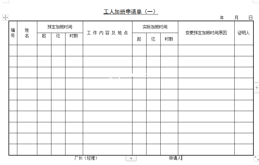 第九节 工人加班申请单(一)-Word文档