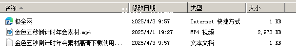 极全网】金色五秒倒计时年会素材高清下载目录1个子文件夹0个文件3个
