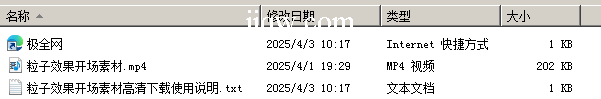 极全网】粒子效果开场素材高清下载目录1个子文件夹0个文件3个