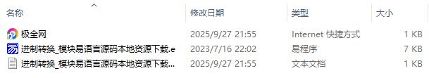 【极全网】进制转换_模块易语言源码本地资源下载目录1个子文件夹0个文件3个