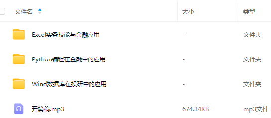 【极全网】华尔街学堂丨三大金融技能工具——Wind. Excel 与 Python(完结)云存储资源下载目录1个子文件夹0个文件4个