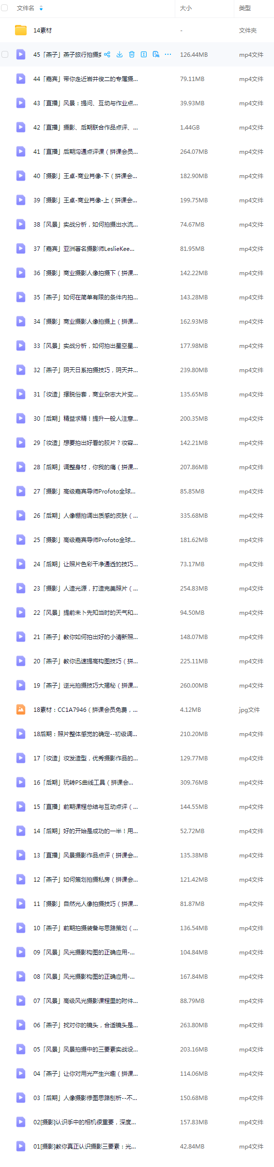 【极全网】爱燕子学院丨摄影综合课(完结)云存储资源下载目录1个子文件夹0个文件4个