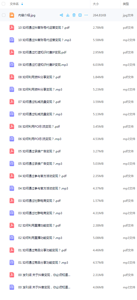 【极全网】抖音变现秘籍(完结)云存储资源下载目录1个子文件夹0个文件4个