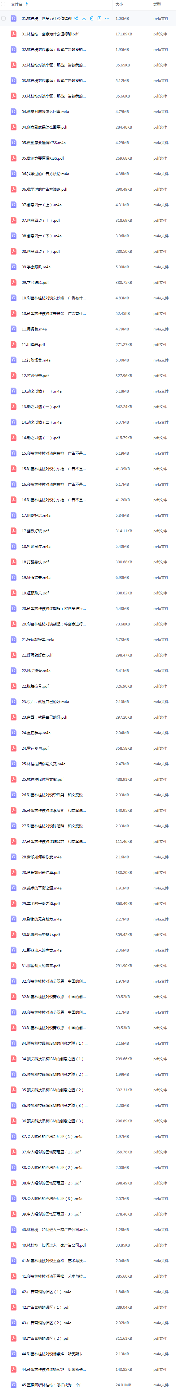 【极全网】 奥美“文案女王”林桂枝的创意课(完结)云存储资源下载目录1个子文件夹0个文件4个