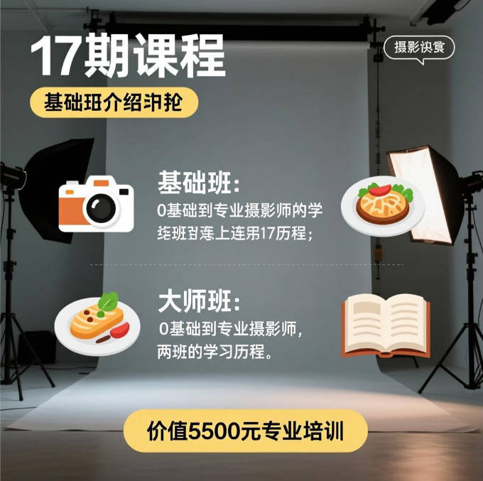 美食摄影17期 基础+大师两班连上,从0基础走上专业摄影师之路课程云存储资源下载