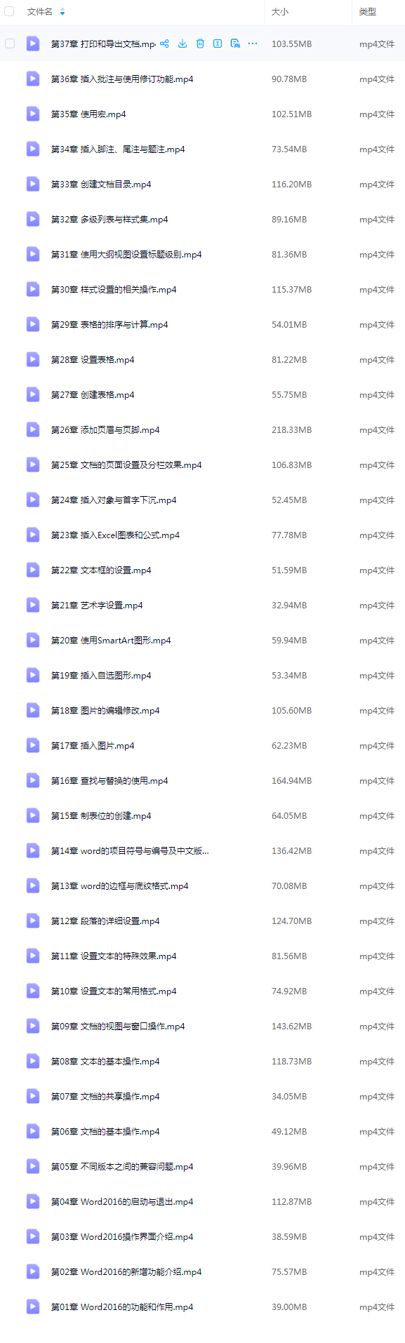 【极全网】office2016视频教程云存储资源下载目录1个子文件夹0个文件4个