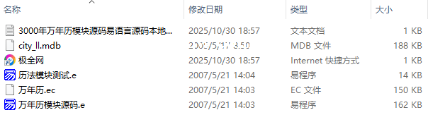 【极全网】3000年万年历模块源码易语言源码本地下载目录1个子文件夹0个文件6个