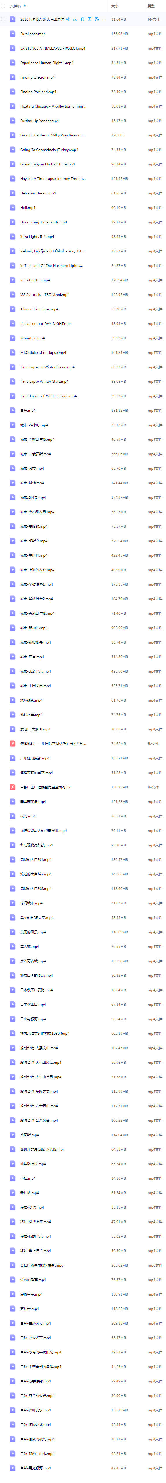 【极全网】延时摄影素材包云存储资源下载目录1个子文件夹0个文件4个