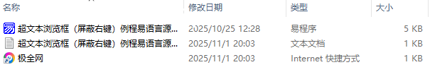 【极全网】超文本浏览框(屏蔽右键)例程易语言源码本地下载目录1个子文件夹0个文件3个