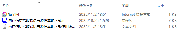 【极全网】内存信息提取易语言源码本地下载目录1个子文件夹0个文件3个