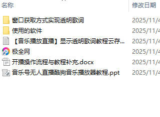 【极全网】【音乐播放直播】显示透明歌词教程云存储资源下载目录1个子文件夹2个文件4个