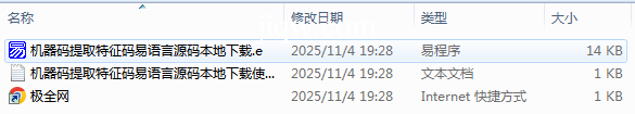 【极全网】机器码提取特征码易语言源码本地下载目录1个子文件夹0个文件3个