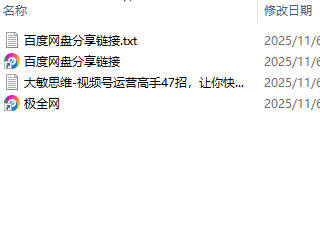 【极全网】大敏思维-视频号运营高手47招,让你快速成为涨粉变现高手云存储资源下载目录1个子文件夹0个文件4个