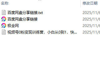 【极全网】视频号0粉变现训练营,小白从0到1,快速起号变现,月入十万不是梦云存储资源下载目录1个子文件夹0个文件4个