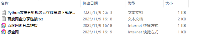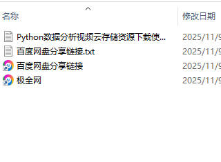 【极全网】Python数据分析视频云存储资源下载目录1个子文件夹0个文件4个
