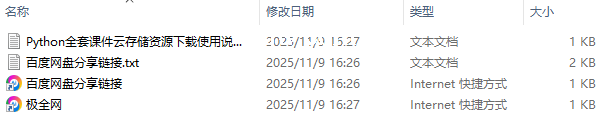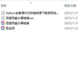 【极全网】Python全套课件云存储资源下载目录1个子文件夹0个文件4个