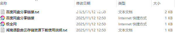 【极全网】闽南语歌曲云存储资源下载目录1个子文件夹0个文件4个