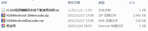 【极全网】H.264视频编解码本地下载目录1个子文件夹0个文件4个