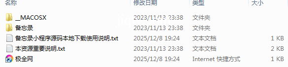 【极全网】备忘录小程序源码本地下载目录1个子文件夹2个文件3个