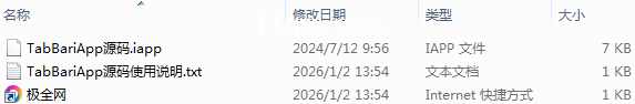 【极全网】TabBariApp源码目录1个子文件夹0个文件3个