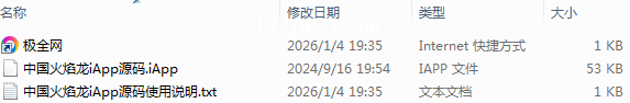 【极全网】中国火焰龙iApp源码目录1个子文件夹0个文件3个
