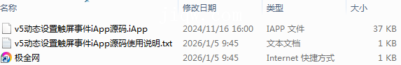 【极全网】v5动态设置触屏事件iApp源码目录1个子文件夹0个文件3个