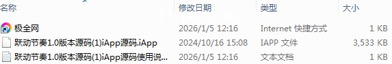 【极全网】跃动节奏1.0版本源码(1)iApp源码目录1个子文件夹0个文件3个