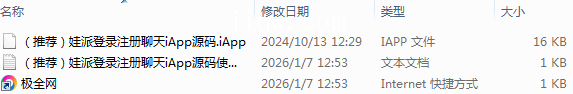 【极全网】(推荐)娃派登录注册聊天iApp源码目录1个子文件夹0个文件3个