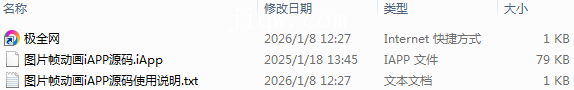 【极全网】图片帧动画iAPP源码目录1个子文件夹0个文件3个