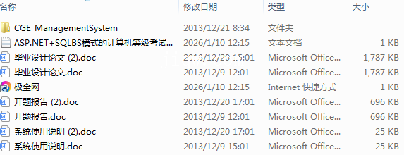 【极全网】ASP.NET+SQLBS模式的计算机等级考试管理系统的设计与实现(论文+源代码+开题报告)-本地下载目录1个子文件夹1个文件8个