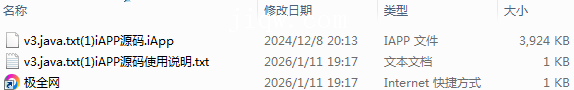 【极全网】v3.java.txt(1)iAPP源码目录1个子文件夹0个文件3个