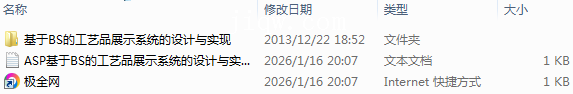 【极全网】ASP基于BS的工艺品展示系统的设计与实现(源代码+论文)-本地下载目录1个子文件夹1个文件2个