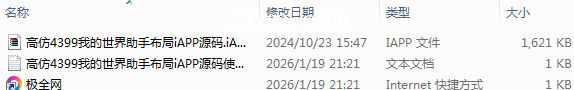 【极全网】高仿4399我的世界助手布局iAPP源码目录1个子文件夹0个文件3个