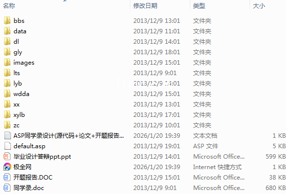 【极全网】ASP同学录设计(源代码+论文+开题报告+答辩PPT)-本地下载目录1个子文件夹11个文件7个