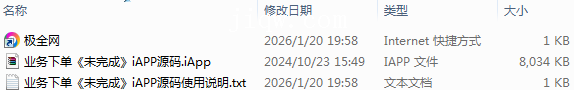 【极全网】业务下单《未完成》iAPP源码目录1个子文件夹0个文件3个