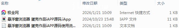 【极全网】悬浮窗浏览器 蛋壳作品iAPP源码目录1个子文件夹0个文件3个