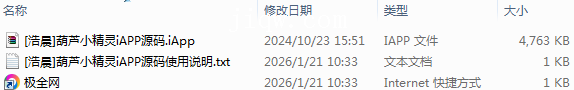 【极全网】[浩晨]葫芦小精灵iAPP源码目录1个子文件夹0个文件3个