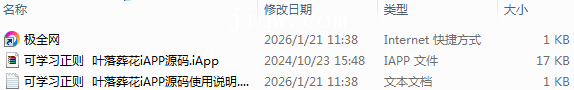 【极全网】可学习正则 叶落葬花iAPP源码目录1个子文件夹0个文件3个
